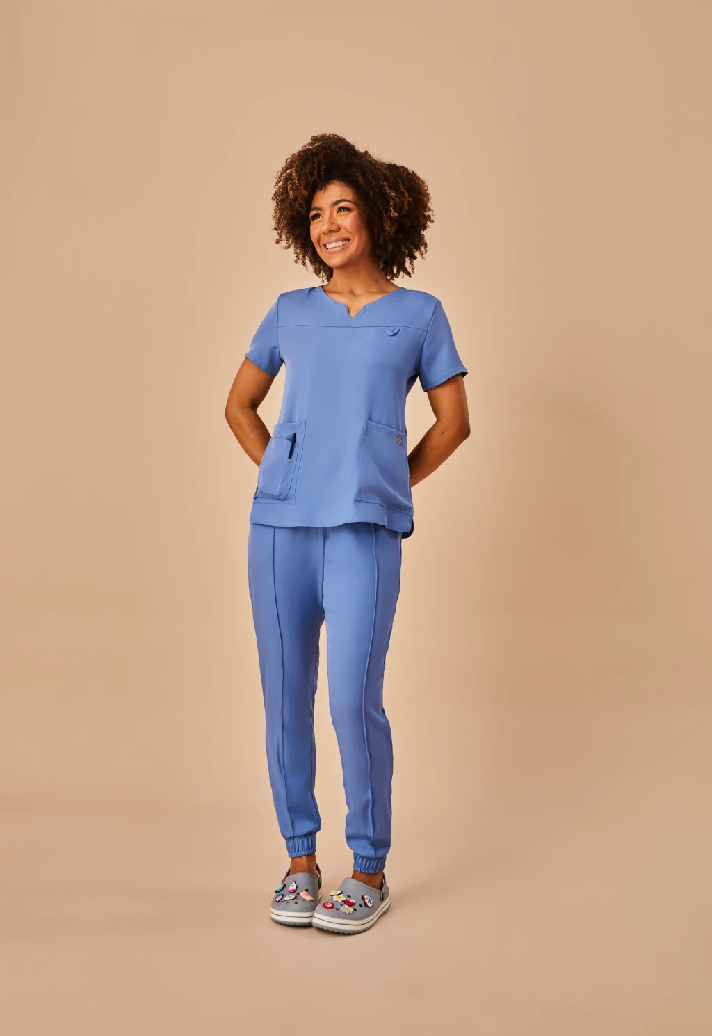 O Scrub feminino Fabiana é a escolha perfeita para profissionais que buscam um pijama cirúrgico confortável sem abrir mão de estilo e praticidade. Escolha certa pra quem busca um modelo pra sair do plantão e estar linda em qualquer lugar. Blusa com detalhe super delicado na gola, com porta crachá, 3 bolsos na frente, porta caneta. Calça com elástico na cintura, que proporciona mais conforto pro dia a dia. Dois bolsos na frente. Elástico na perna. Personalize seu pijama cirúrgico com BORDADO do seu logotipo (marca), nome ou profissão.