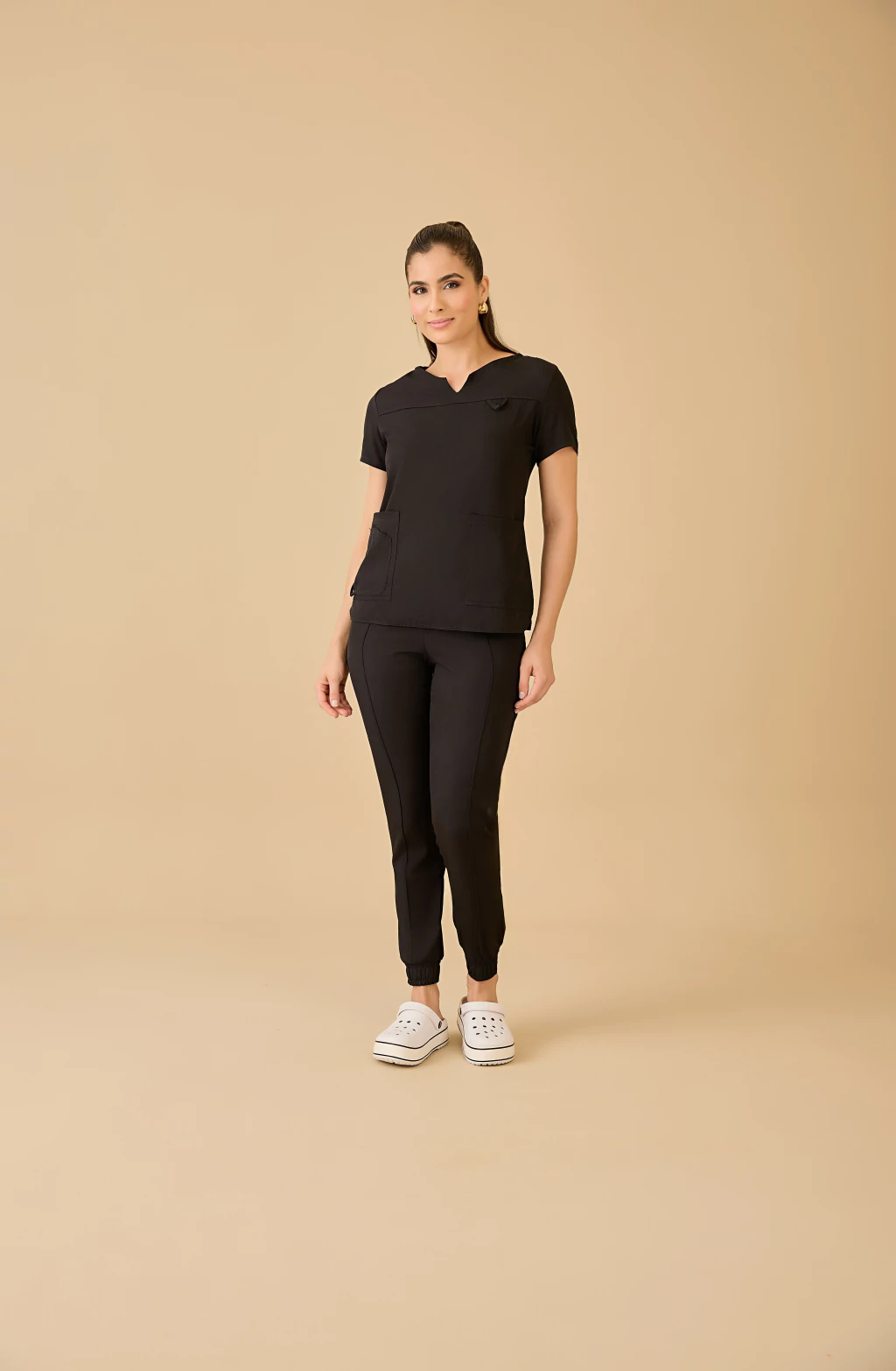 O Scrub feminino Fabiana é a escolha perfeita para profissionais que buscam um pijama cirúrgico confortável sem abrir mão de estilo e praticidade. Escolha certa pra quem busca um modelo pra sair do plantão e estar linda em qualquer lugar. Blusa com detalhe super delicado na gola, com porta  crachá, 3 bolsos na frente, porta caneta. Calça com elástico na cintura, que proporciona mais conforto pro dia a dia. Dois bolsos na frente. Elástico na perna. Personalize seu pijama cirúrgico com BORDADO do seu logotipo (marca), nome ou profissão.