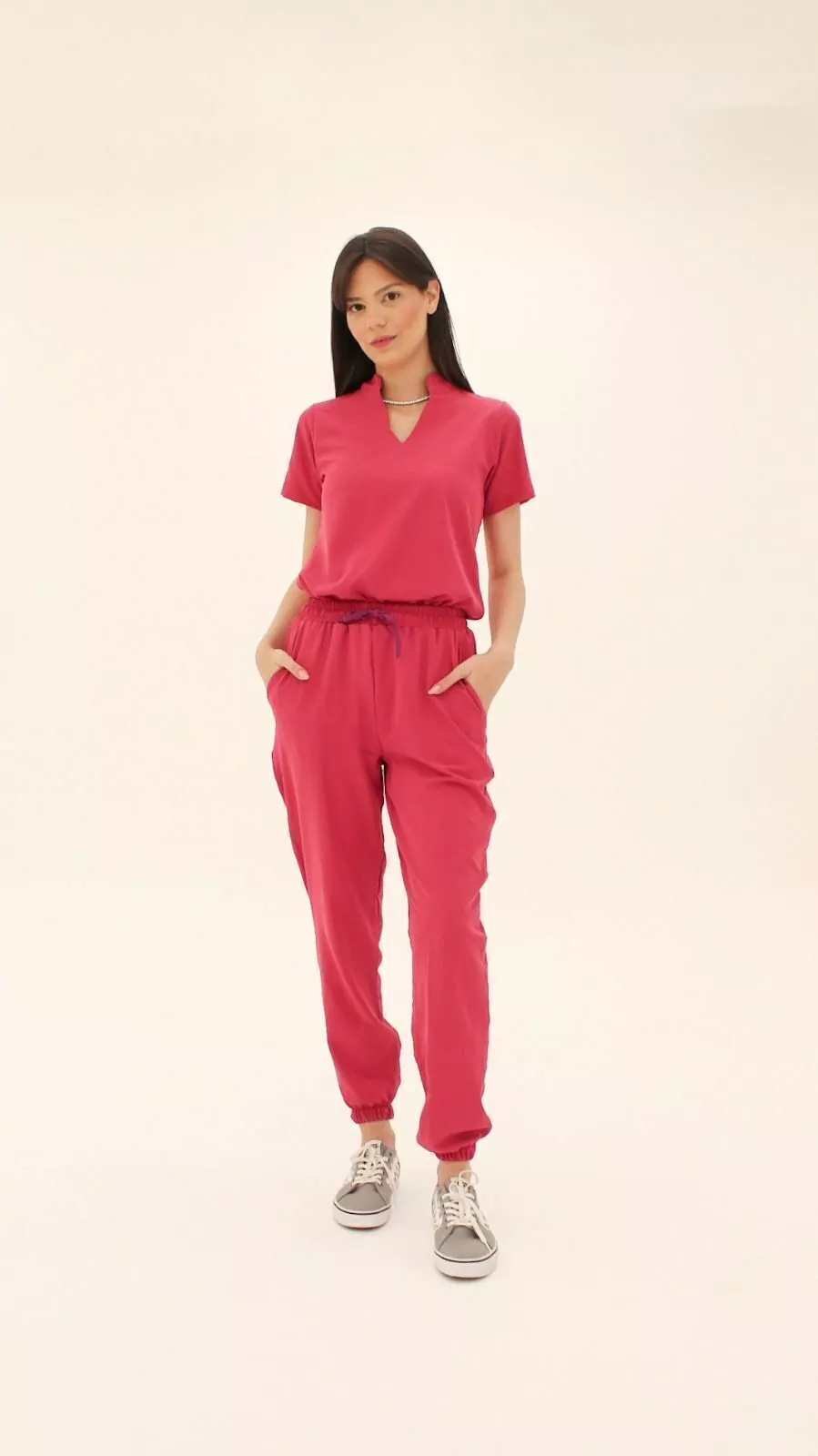 O Scrub Izabel é confeccionado com  spandex, oferecendo leveza,  praticidade  no seu dia a dia por ser fácil de lavar,  secar rápido e não amassa.